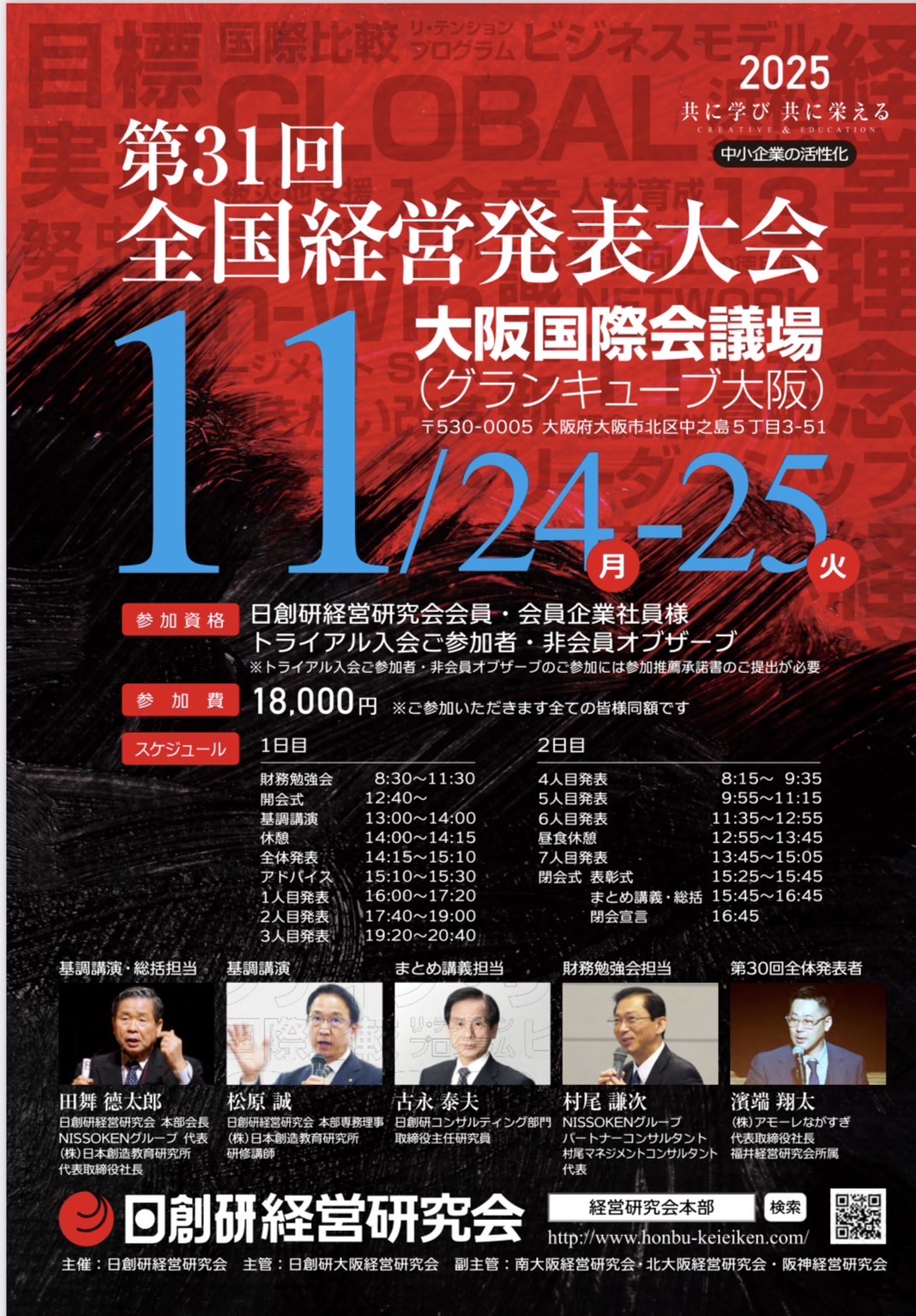 日創研那須野ヶ原経営研究会・宇都宮経営研究会 発表者のさらなる成長と会員の気づきによる企業成長を目指して!! 【日時】 2025年8月28日(木) 総 会 13:30~14:30 受 付 14:45~ 例 会 15:0 […]